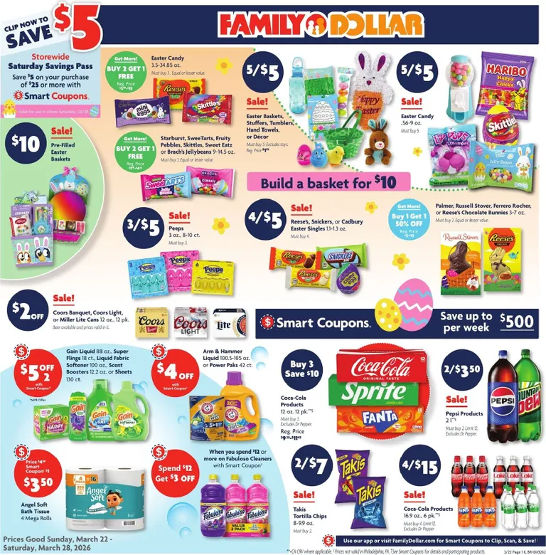 You’re viewing the Family Dollar weekly ad, valid from 03/22/2026 to 03/28/2026. Visit our website regularly to stay up to date with the latest deals and promotions from your favorite stores.