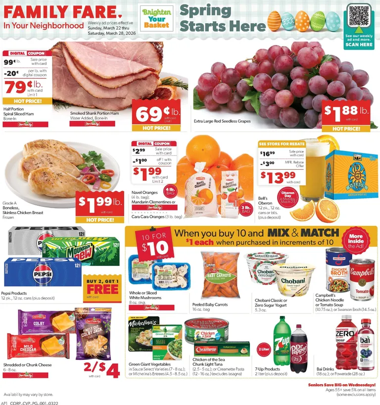 You’re viewing the Family Fare weekly ad, valid from 03/22/2026 to 03/28/2026. Visit our website regularly to stay up to date with the latest deals and promotions from your favorite stores.